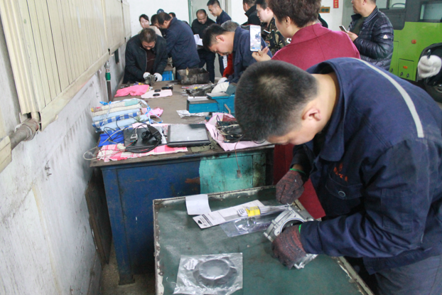 修理工赛区要求选手们在规定时间内保质保量的将手中的有问题的汽车配件的毛病找到并修好,最后拿到车上进行检验。修理工选手们在各自准备好自己的修理工具后,随着一声哨响,比赛开始,大家有条不紊地熟练的更换着修理工具,拆解着配件,虽然都在默默的忙活着,但能感觉得到一种紧张的竞争气氛。