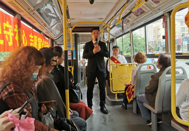 5月13日,216路公交车上,一堂生动的 “流动党史课”在车厢内进行着,青年志愿者们身披绶带,热情演出。演讲员讲诉党史故事《沂蒙山》,追寻革命先辈的光辉足迹,回顾和展现中华民族伟大复兴中国梦的奋斗历程;宣传员快板表演《我是企业宣传员》,用节奏鲜明的语言介绍公交车的发展脉络,从公交变化看时代进步,从驾驶员优质服务和乘客文明乘车的视角讲述和谐美丽大鞍山。