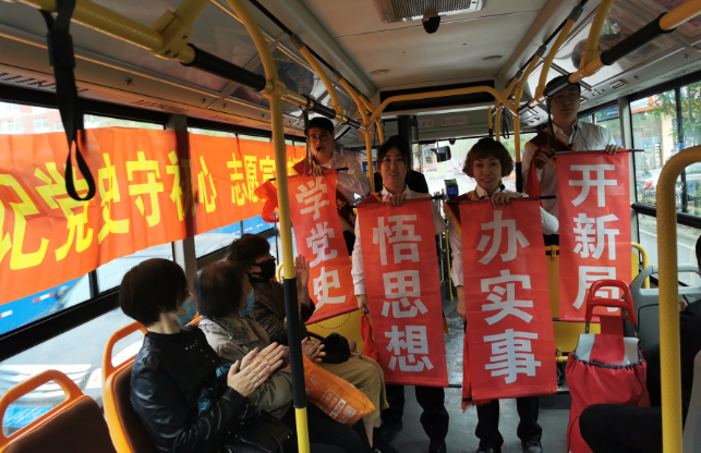 为充分发挥公交车流动性强、宣传面广的优势,交运集团的车厢文艺演出将继续走进各条公交线路,并在部分公交车厢悬挂国旗、党旗,张贴党史故事,做到学史明理、学史增信、学史崇德、学史力行,以昂扬姿态奋力开启全面建设社会主义现代化国家新征程,以优异成绩迎接建党一百周年。